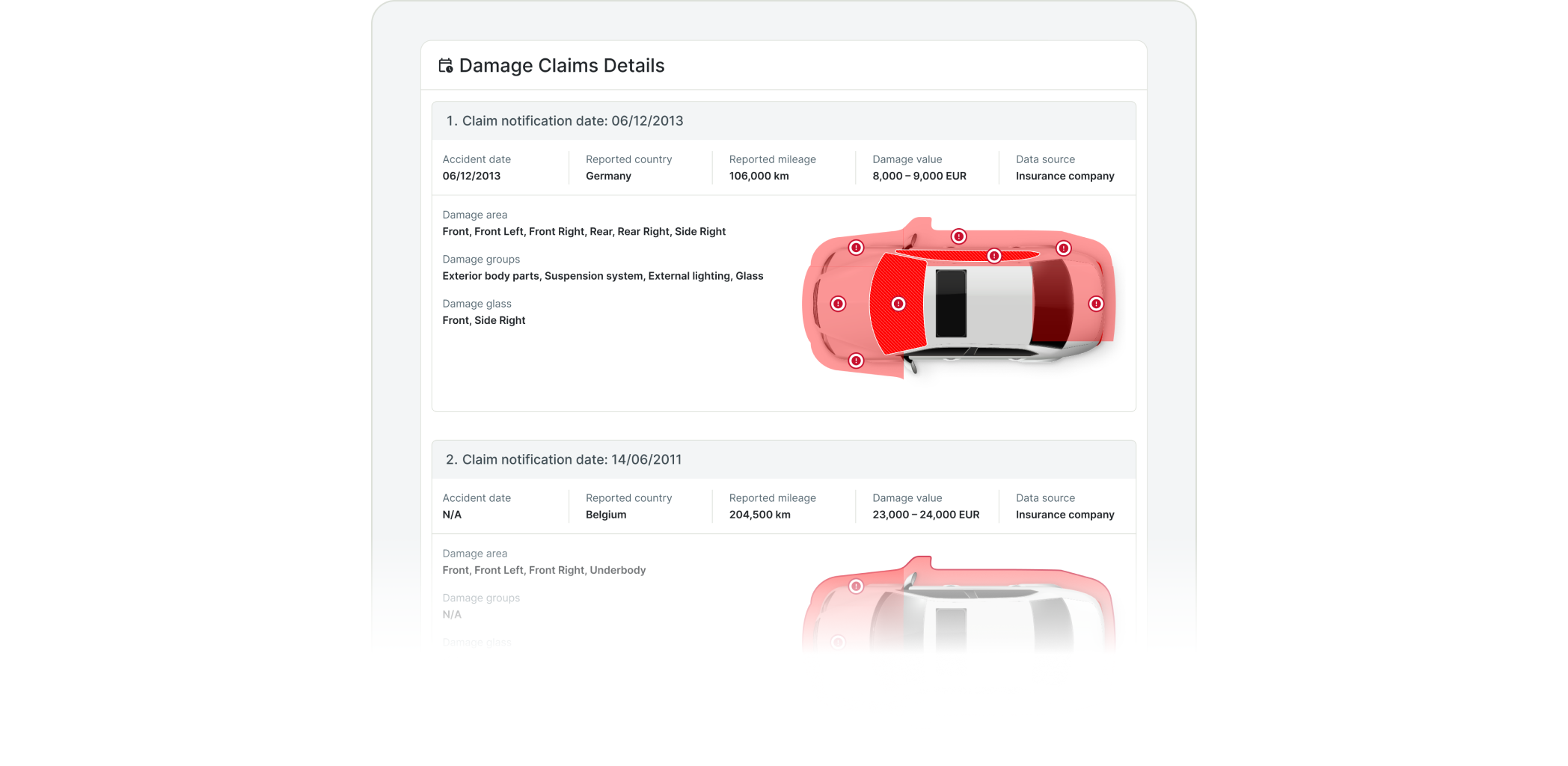 Please note that insurance claim information may be subject to reporting delays. In certain countries, such as Belgium, it can take up to 90 days between the declaration of an accident and the moment this information becomes available in our databases.