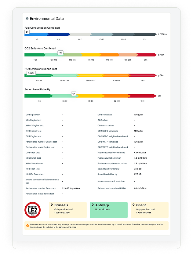 Don’t forget to check here if this vehicle is allowed in Low Emission Zones and for how long.